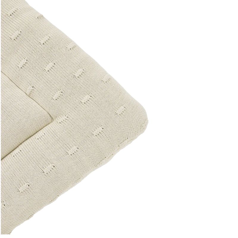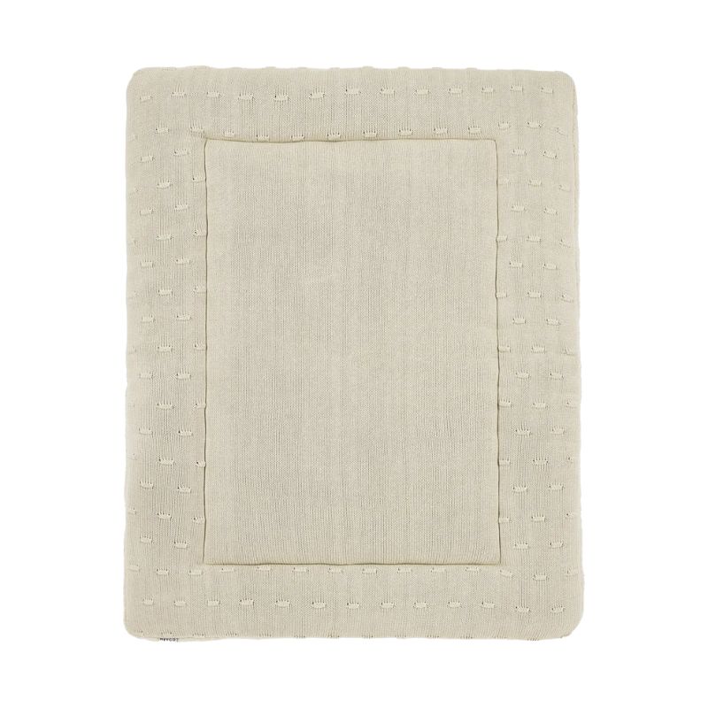 Op dit Meyco boxkleed soft sand rechthoek kan je kindje veilig spelen of slapen in de woonkamer. Een boxkleed is multifunctioneel, want je kunt het naast de box ook gebruiken als speelkleed op de vloer of buiten in de tuin. Dit boxkleed is voorzien van een rustig, modern en speels design en voelt ook nog eens superzacht aan. Combineer dit met andere items uit de Meyco Baby knots soft sand collectie tot de stijl die bij jou past! De gebreide boxkleden zijn aan de voorkant gemaakt van een 100% knitted katoenen hoes, de achterkant is van 100% teddystof en een vulling van 100% polyester.